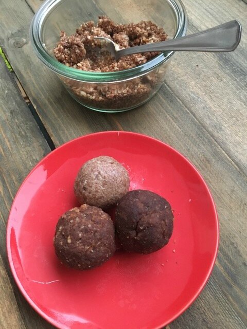 Vous façonnez donc de petites boules (la taille d’une noix) puis vous les laissez au réfrigérateur au moins 1 heure pour qu’elles durcissent ou au congélateur environ 1/4 d’heure.